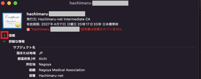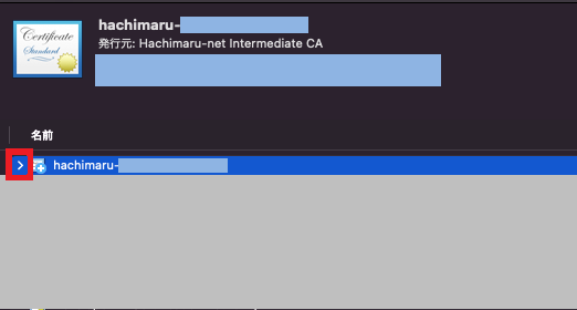 インストールした証明書の『>』をクリックします。