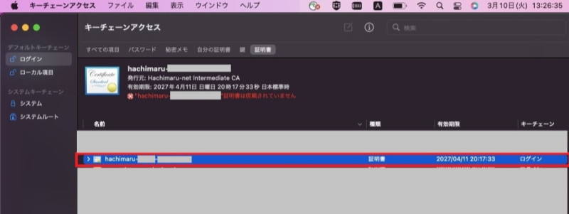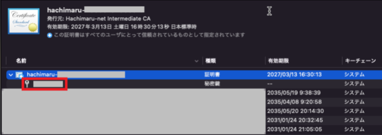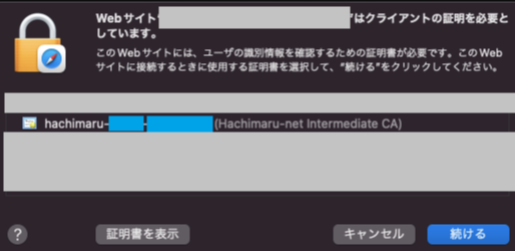 ※はち丸ネットワークの証明書は「hachimaru-{数字5桁}-{数字8桁}」で表示されます。