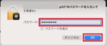 『証明書取得用パスワード』を入力し,『OK』をクリックします。