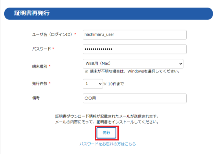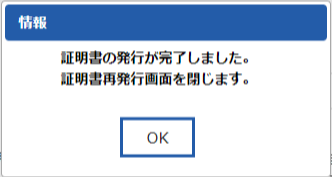 証明書再発行ページが表示されます。
