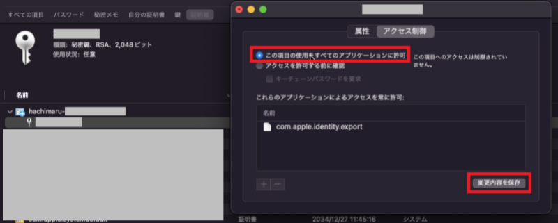 キーチェーンアクセス画面が表示されたら,『hachimaru-{数字5桁}-{数字8桁}』を